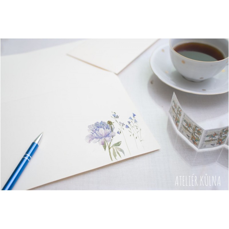 10 ks dopisních papírů s autorskými motivy. Papíry jsou béžové, hladké, vyšší gramáž.