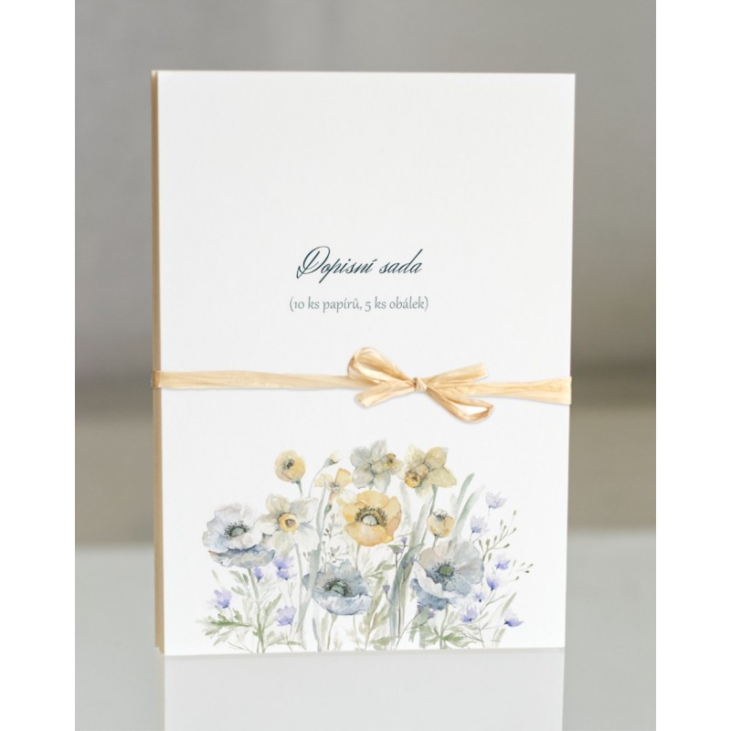 Dopisní sada je tvořena 10 ks dopisních papírů a 5 ks obálek. Papíry jsou dekorovány autorskými motivy, obálky jsou bez motivu, vyšší gramáže, dekorativní, hladké.