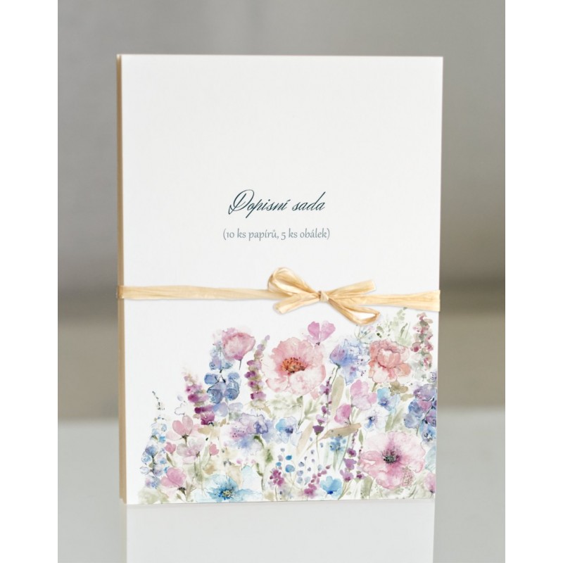 Dopisní sada je tvořena 10 ks dopisních papírů a 5 ks obálek. Papíry jsou dekorovány autorskými motivy, obálky jsou bez motivu, vyšší gramáže, dekorativní, hladké.