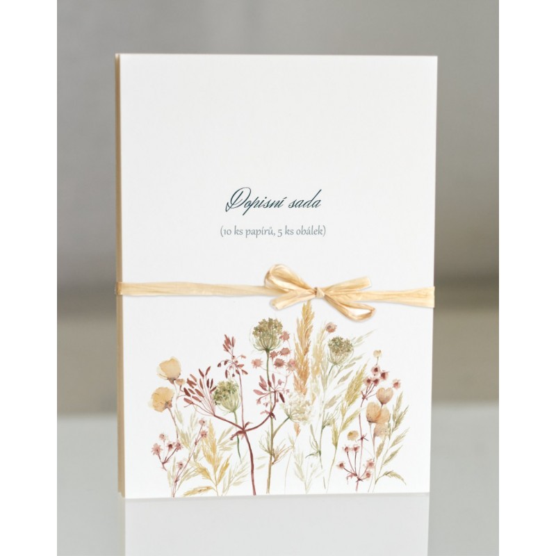 Dopisní sada je tvořena 10 ks dopisních papírů a 5 ks obálek. Papíry jsou dekorovány autorskými motivy, obálky jsou bez motivu, vyšší gramáže, dekorativní, hladké.