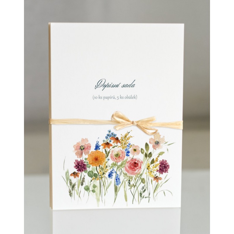 Dopisní sada je tvořena 10 ks dopisních papírů a 5 ks obálek. Papíry jsou dekorovány autorskými motivy, obálky jsou bez motivu, vyšší gramáže, dekorativní, hladké.