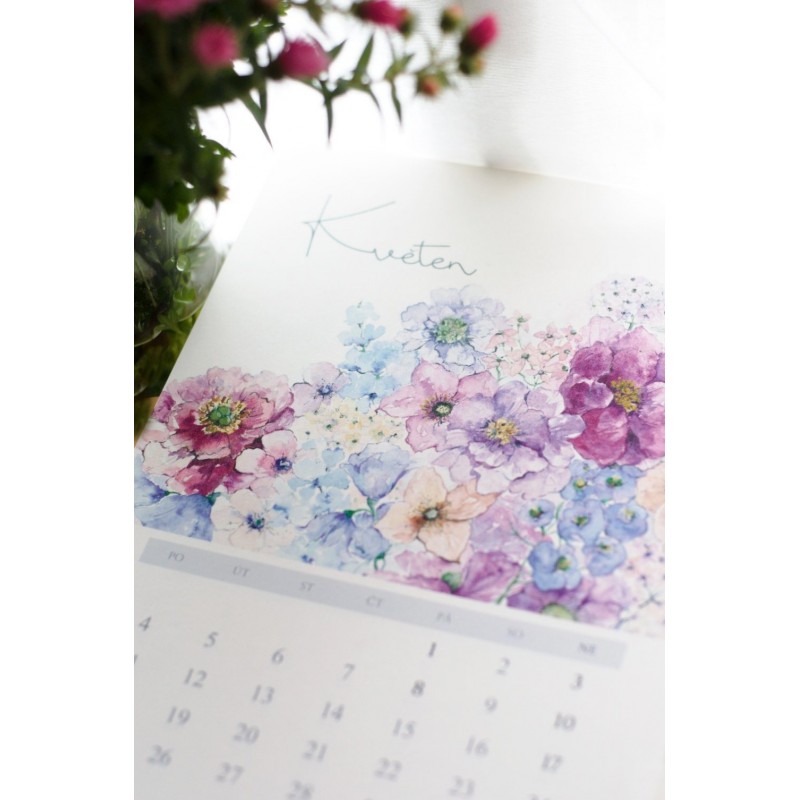 Nástěnný kalendář 2026 s motivy květin - akvarel.