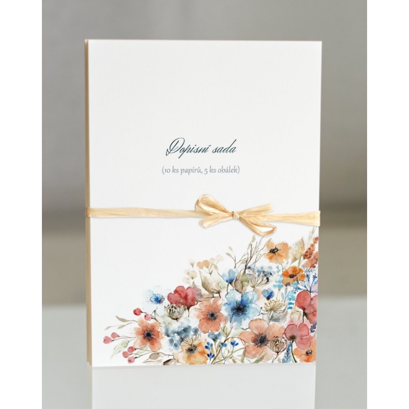 Dopisní sada je tvořena 10 ks dopisních papírů a 5 ks obálek. Papíry jsou dekorovány autorskými motivy, obálky jsou bez motivu, vyšší gramáže, dekorativní, hladké.