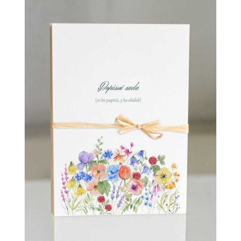 Dopisní sada je tvořena 10 ks dopisních papírů a 5 ks obálek. Papíry jsou dekorovány autorskými motivy, obálky jsou bez motivu, vyšší gramáže, dekorativní, hladké.