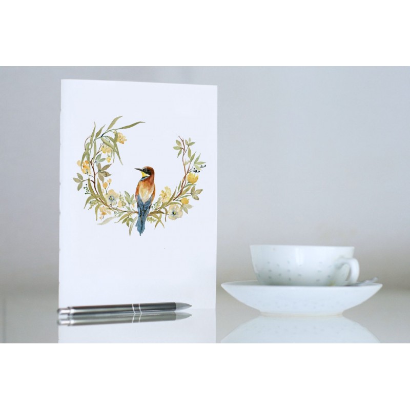 14 hladkých béžových případně bílých listů, vnější obal pevný papír, hladký bílý, vlastní autorský obrázek na vnější straně.