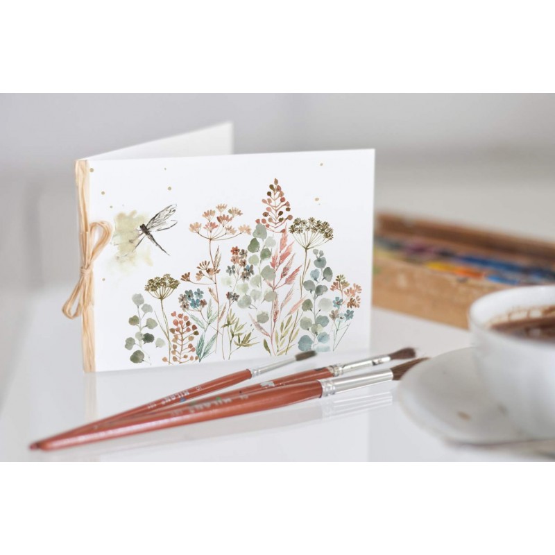 Přání s tiskem autorské malby je velikosti 14,5 x 10,5 cm, papír vyšší gramáže. Převázáno lýkem.